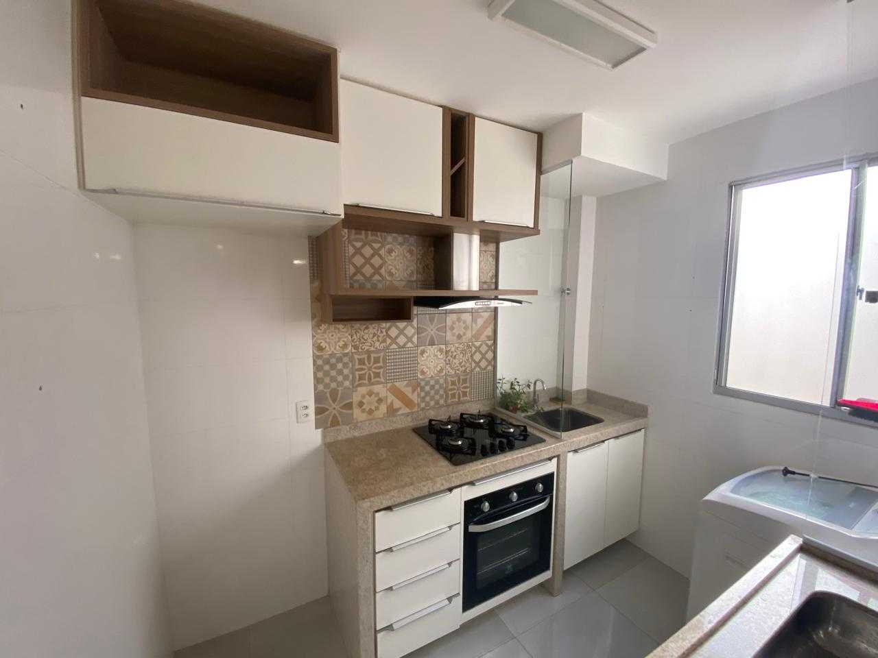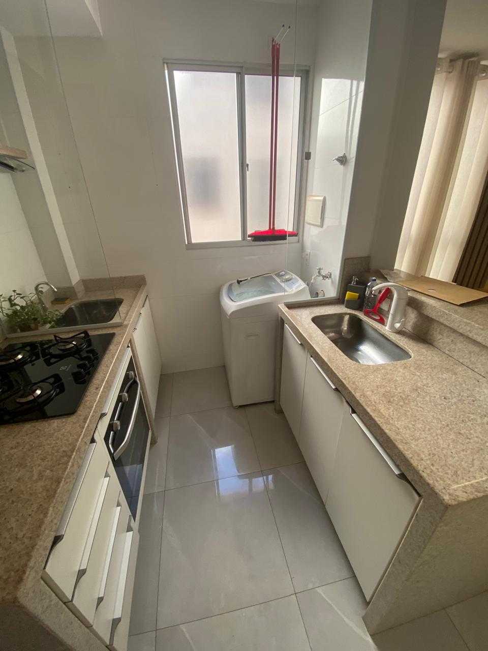 02 dormitorios sendo 01 com armário, sala, banheiro, cozinha com armário, fogão/forno, maquina de lavar roupas e 01 vaga de garagem