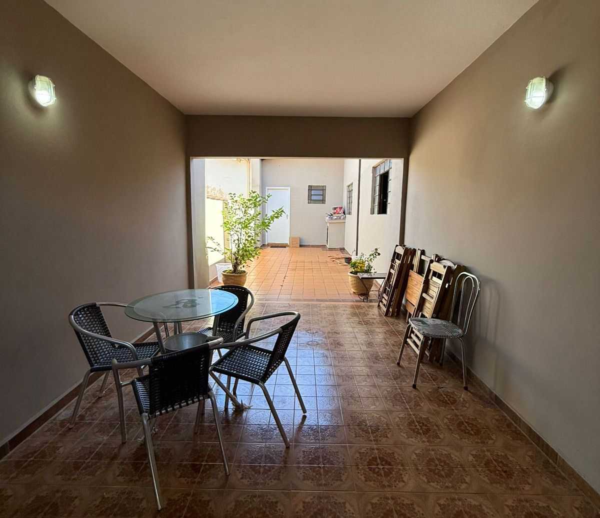 03 dormitórios sendo uma suíte, sala, copa, cozinha, banheiro social, lavanderia, despejo, quintal e garagem para 03 carros em gaveta